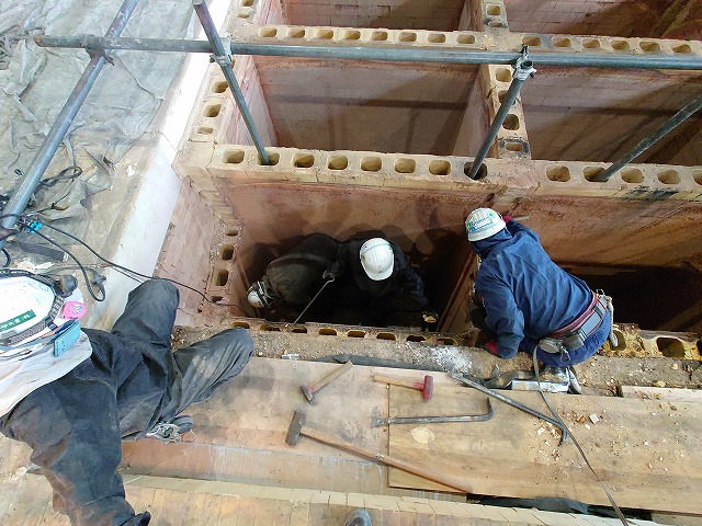 製鉄所などの工場にある溶鉱炉や、市町村などのクリーンセンターの焼却炉など、あらゆる炉を作る・補修する仕事です。